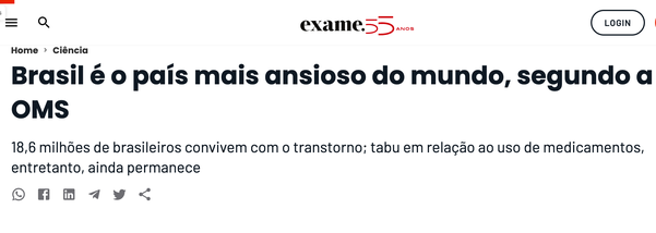 O Brasil tem o maior número de pessoas ansiosas do mundo segundo a Organização Mundial de Saúde (OMS).